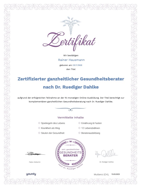Ganzheitlicher Gesundheitsberater (nach Dr. Rüdiger Dahlke)
